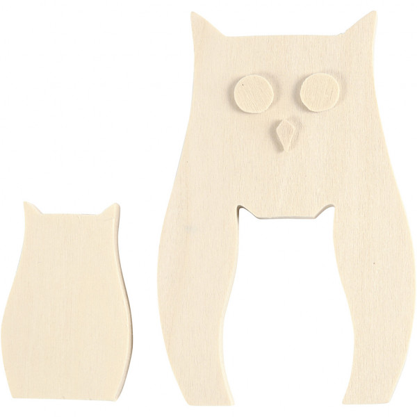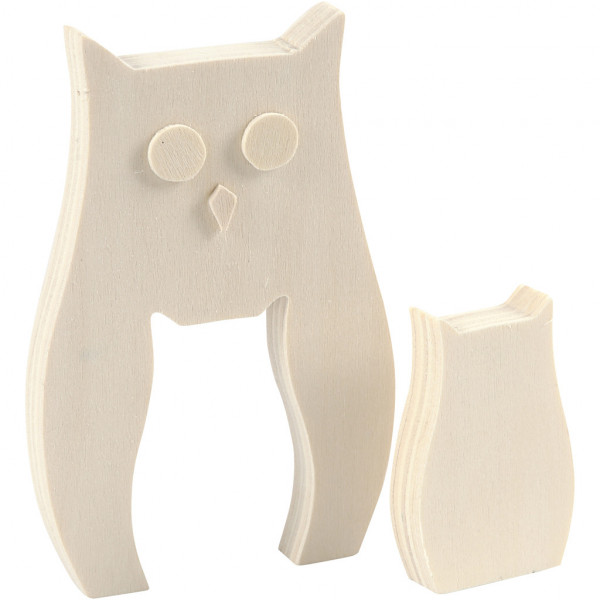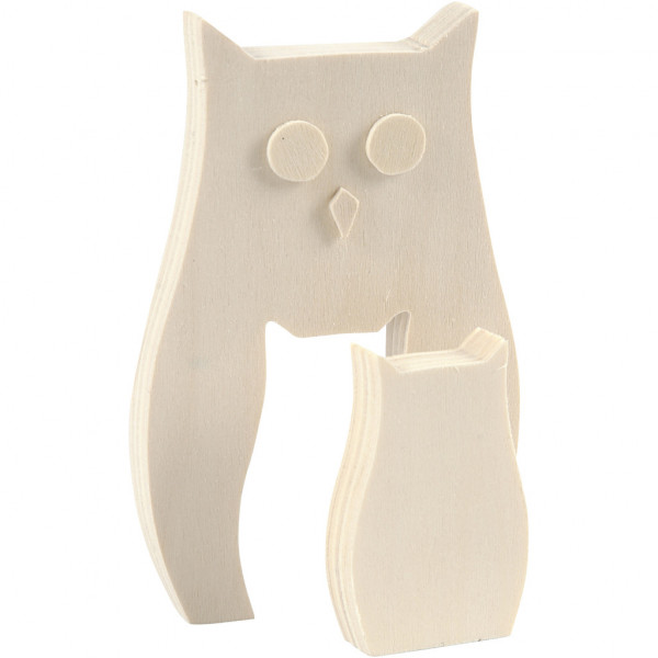2in1 - Holzfigur, Eulen, H 6+11,5 cm, B 3,8+7,5 cm, Sperrholz, 1Set, Tiefe 1,2 cm [HOB-56151]