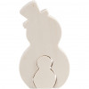 Zwei Schneemänner aus hellem Holz - die kleinere Figur lässt sich aus der größeren Figur herauslösen.