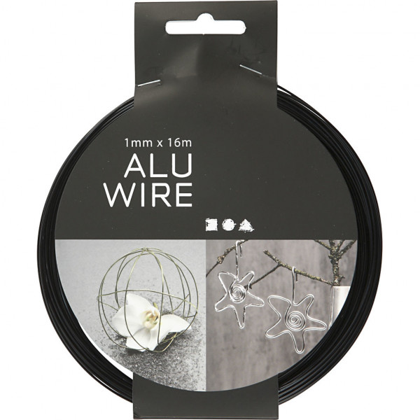 Aluminiumdraht, Stärke: 1 mm, Schwarz, rund, 16m [HOB-518311]