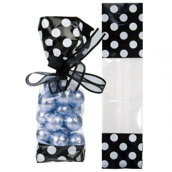 The G2BW is the life of the party with a cute black with white polka dots print on the top and bottom of the bag. Our printed side gusset bag measures 67 x 48 x 273 mm and works great for taffy, wrapped candies, chocolates, Biscotti, cosmetics, crafts, and more. This side gusseted bag is 40 micron thick, bottom-sealed, and made with laminated material for added strength. Your goodies are well secured in this plastic candy bag. The center of the bag is clear to showcase your product. Expanding sides can accommodate bulkier products. Add bow or ribbons for an attractive presentation. This bag can also be heat sealed with a standard hand sealer for a more secure closure.