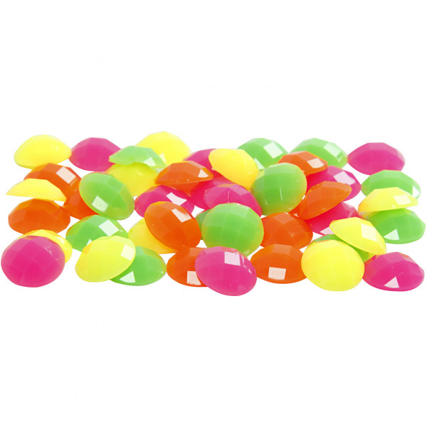 Cabochons - Sortiment, D: 14 mm, Stärke: 4 mm, Neonfarben, 300sort. [HOB-68012]