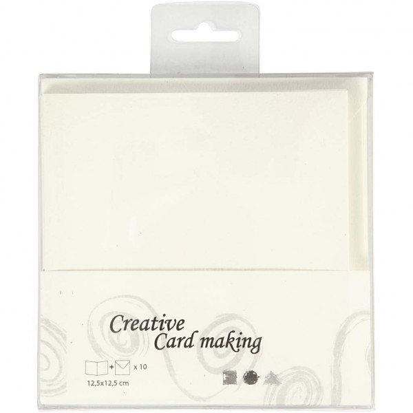 Karten und Umschläge , Kartengröße 12,5x12,5 cm, Umschlaggröße 13,5x13,5 cm, Off-white, 10Sets [HOB-23728]