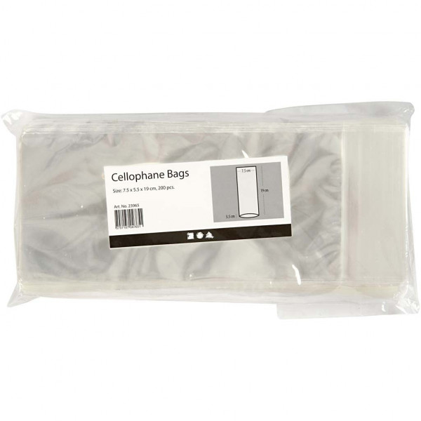 Cellophantüten, Größe 7,5x5,5 cm, H 19 cm, 200Stck., 25 Micron [HOB-23965]