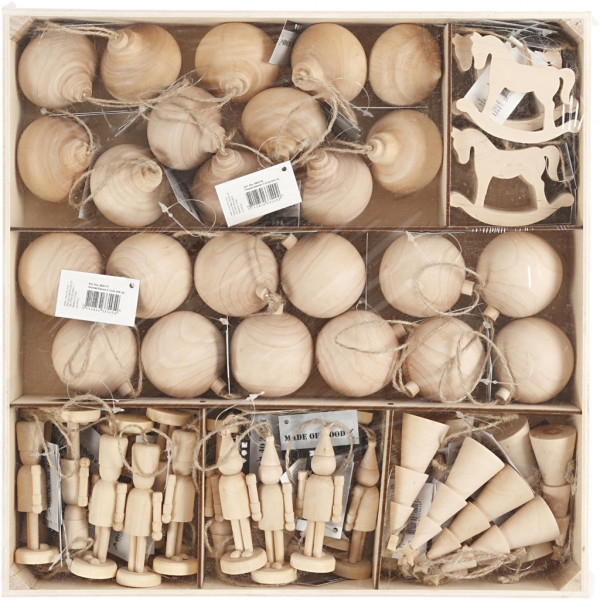 Christmas Ornaments, H: 5.5-9 cm, 72 pcs, birch [HOB-56511]