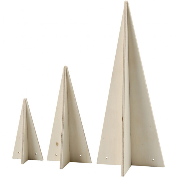 Weihnachtsbaum als Kegel, H 10+15+25 cm, D: 10+7+5 cm, Sperrholz, 3Stck. [HOB-56412]