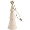 Christmas tree made of round cone in solid wood with star on top and suspension line.