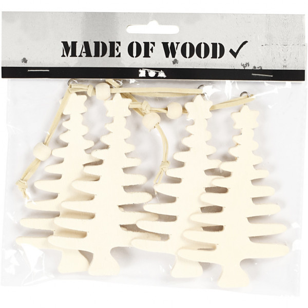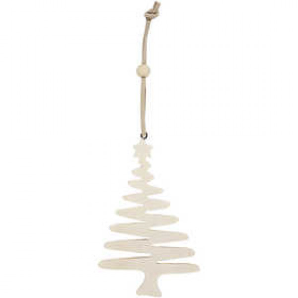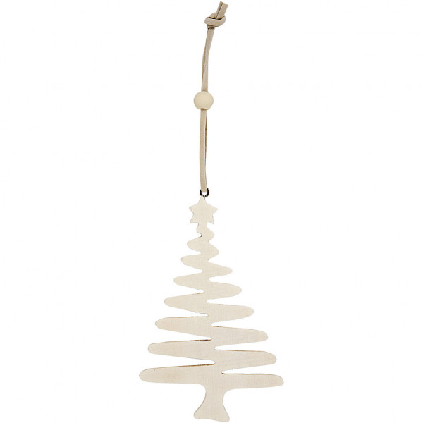 Moderner Weihnachtsbaum aus hellem Holz - mit Öse und Kordel zum Aufhängen.