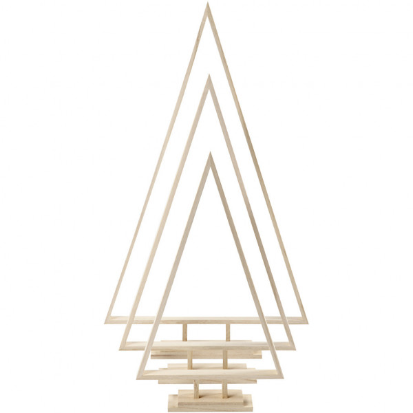 Weihnachtsbäume als Kontur aus hellem Holz - glatte Konturen auf stabilem Standfuß.