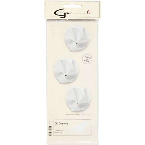Click Ornamente, Größe 3,5x8,8 cm, D: 5 cm, Weiß, 9Sets [HOB-25141]
