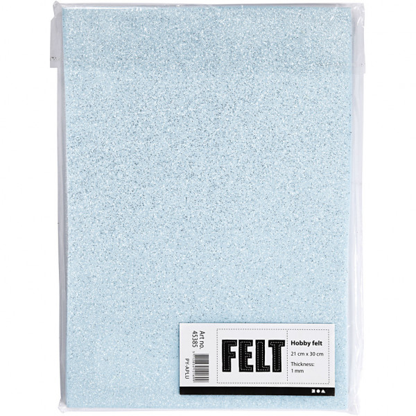 Bastelfilz, A4 21x30 cm, Stärke: 1 mm, Hellblau, Silberglitter-Sprenkel, 10Bl. [HOB-45385]