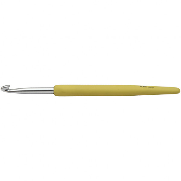 Häkelnadel aus Aluminium mit ergonomisch geformtem 'Softtouch'-Kunststoffgriff.
