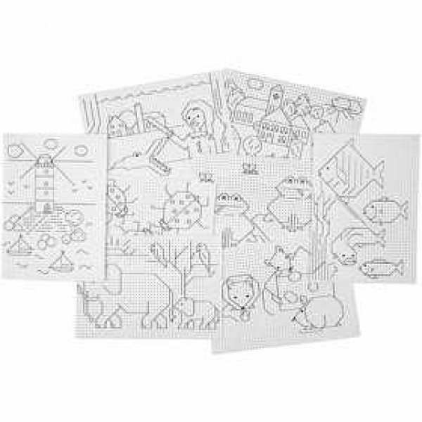 Interessanter Karton bedruckt mit vorgestanzten Löchern zum einfachen Nachsticken - Packung mit 8 Motiven á 5 Blatt.