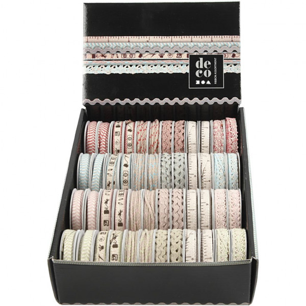 Sortiment - Dekobänder in einer Display Box.