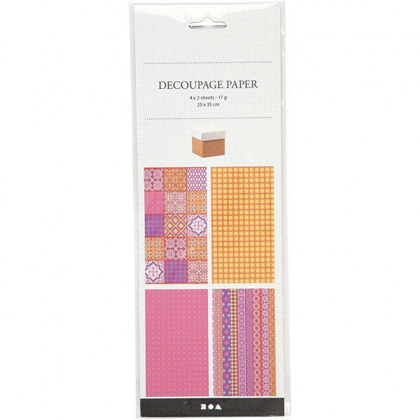 Découpage-Papier - Sortiment, Blatt 25x35 cm,  17 g, Harmonie in Pink, 8Bl. sort. [HOB-254890]
