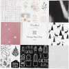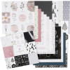 36 Blätter = einseitiger Druck (128 g/m²): 3 x 2 Lack und 3 x 2 Glitter, einseitiger Druck (120 g/m²): 2 x 2 mit Metallfolie in Gold, 20 sort. Blätter in 10 verschdn. Prints.
