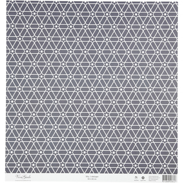 Design-Papier, Blatt 30,5x30,5 cm,  180 g, Weiß, Silber, Schwarz, Sternmuster / Hirsche, 3Bl. [HOB-22509]