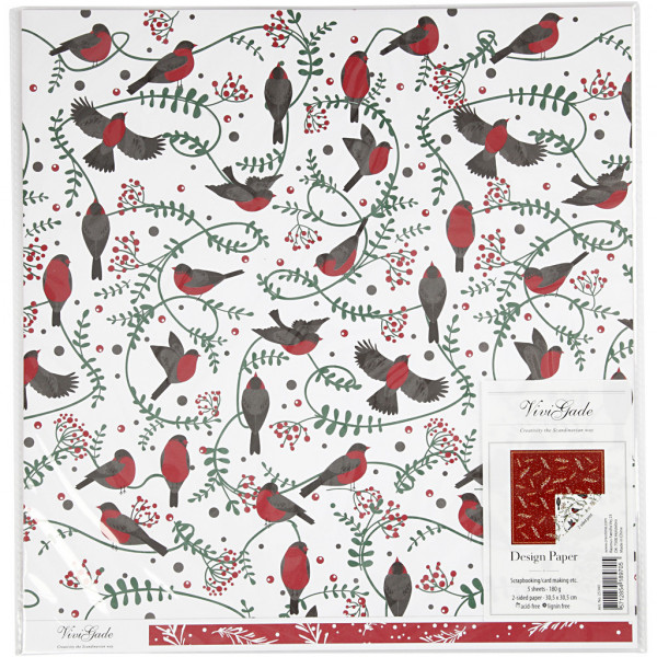 Design-Papier, Blatt 30,5x30,5 cm,  180 g, Vögel & Zweige, 5Bl. [HOB-25340]