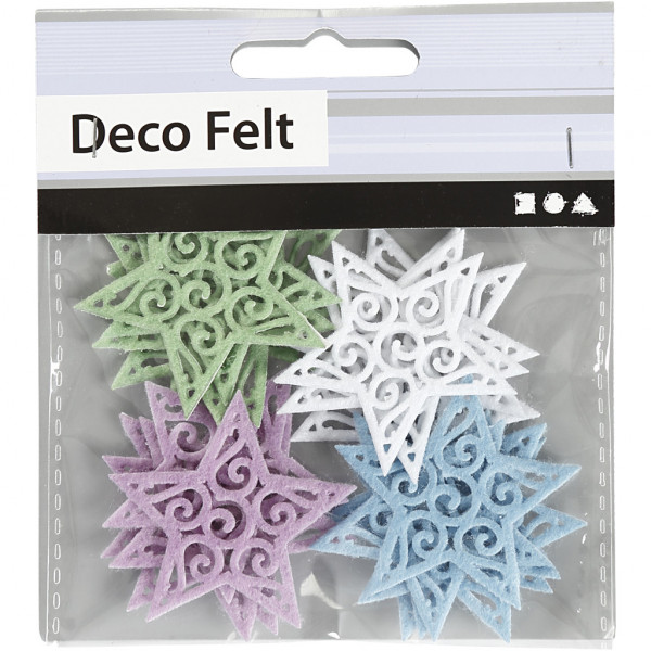 Filz Sterne, D: 46 mm, Stärke: 1 mm, 20sort. [HOB-504560]