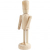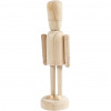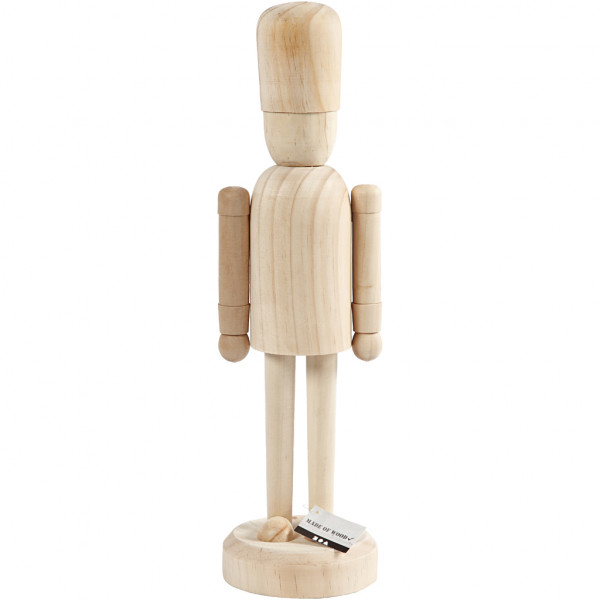 Figure in bright wood with fine details and moving arms. Mounted on foot so the figure can stand.