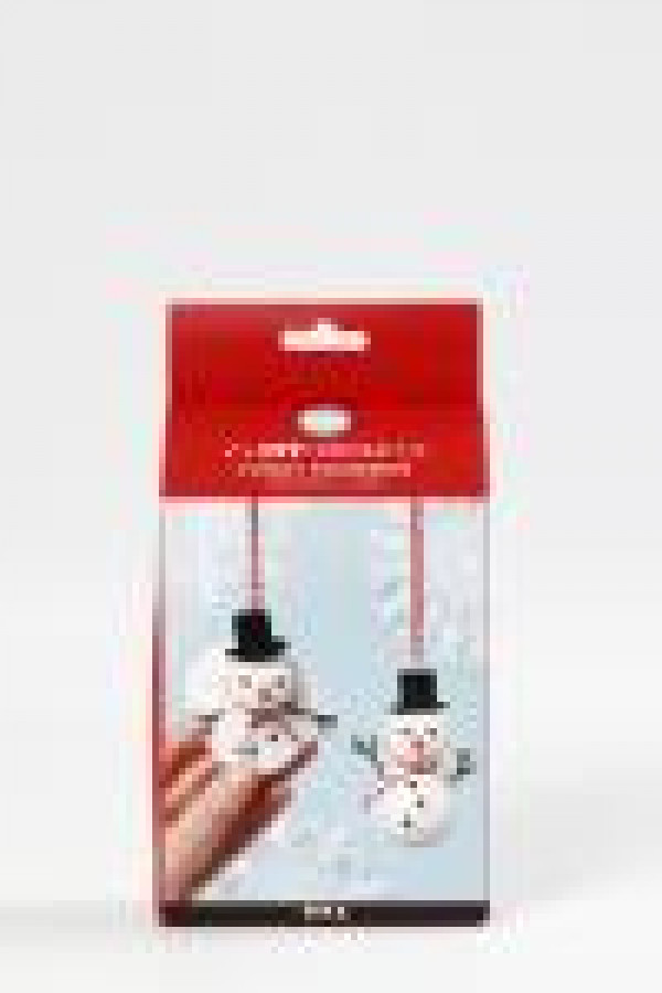 Material set for 2 ornaments of styrofoam balls coated with Foam Clay or decorated with eyes, noses, arms and hats. String for suspension included.