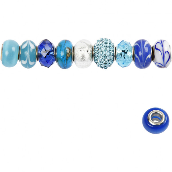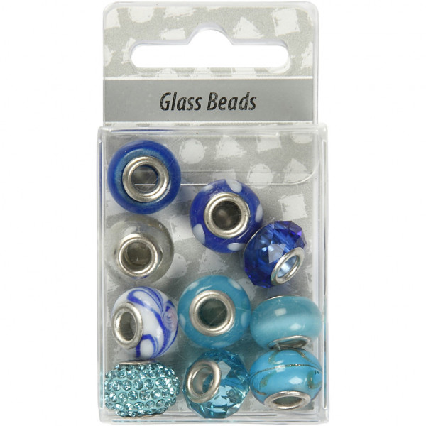 Glasperlen Harmonie, D: 13-15 mm, Lochgröße 4,5-5 mm, Blautöne, 10sort. [HOB-68772]