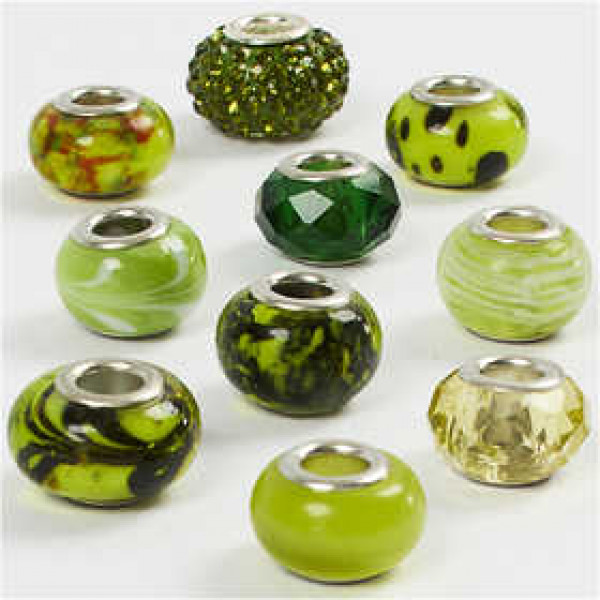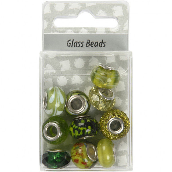 Glasperlen Harmonie, D: 13-15 mm, Lochgröße 4,5-5 mm, Grüntöne, 10sort. [HOB-68771]