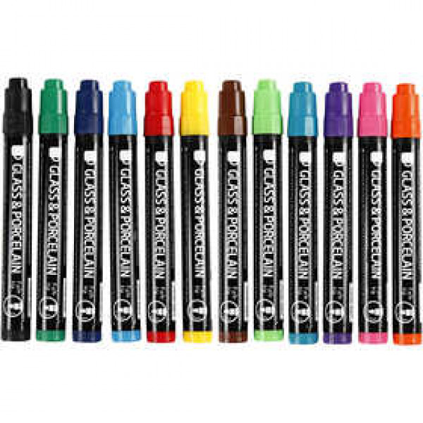 Glas- und Porzellanmalstifte, Strichstärke: 1-3 mm, Halbdeckend, 12Stck. [HOB-31653]