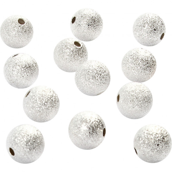Glitzerperlen, D: 10 mm, Lochgröße 1,5 mm, Versilbert, 20Stck. [HOB-60666]