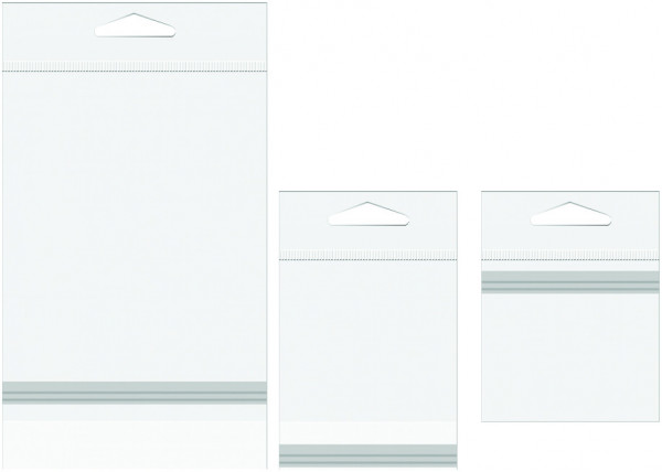 Ideal um Ihre Produkte zu präsentieren und im Detailhandel zu verkaufen, Top Opening kristallklare Headerbeutel sind aus derselben durchsichtigen Folie hergestellt wie unsere wiederverschließbaren Beutel. Hergestellt mit einer dicken Headerkarte für Festigkeit im Retaildisplays. Öffnung ist oben im Beutel.