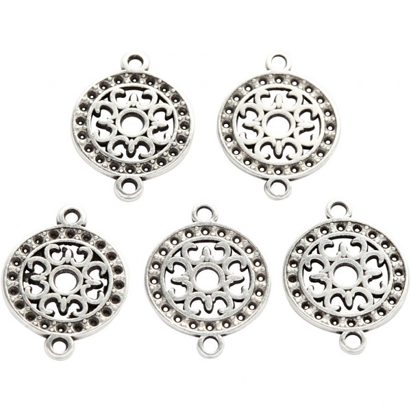 Schmuckanhänger, D: 14 mm, Lochgröße 1,2 mm, Versilbert, 5Stck. [HOB-61173]