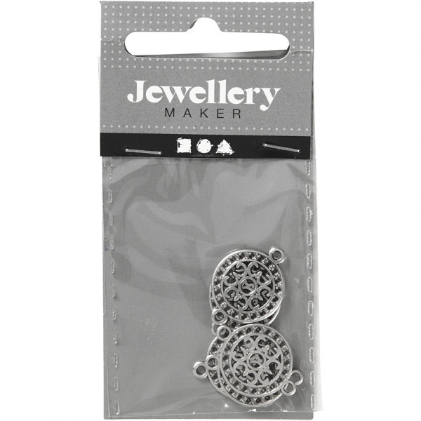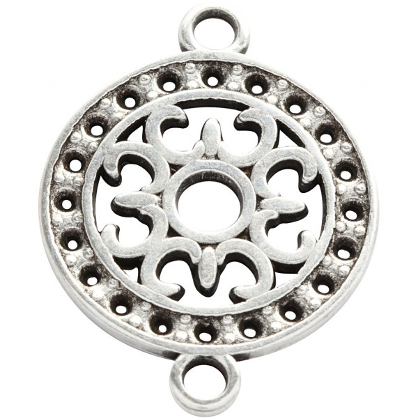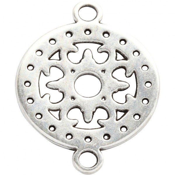 Metallanhänger mit filigranem, ausgestanzten Muster und Öse an beiden Seiten.