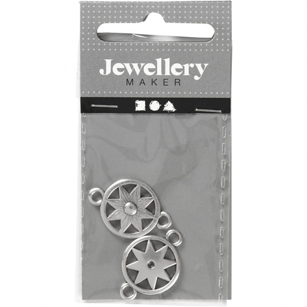 Schmuckanhänger, D: 15 mm, Lochgröße 2,5 mm, Versilbert, 2Stck. [HOB-61172]