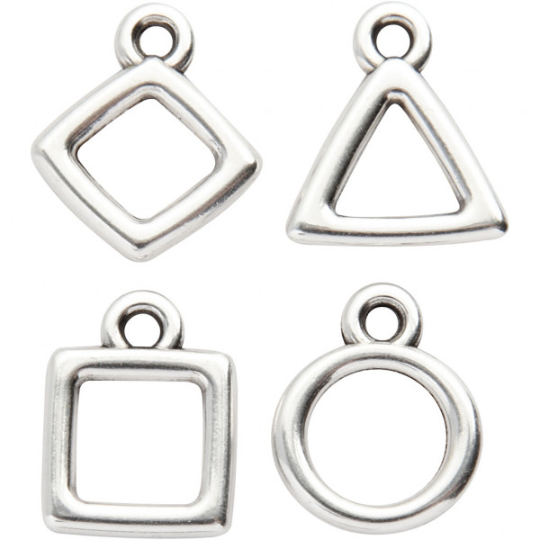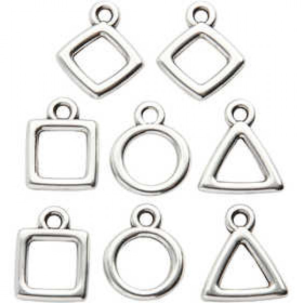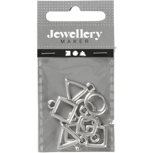 Metallanhänger in geometrischen Formen mit Öse zum Aufhängen.