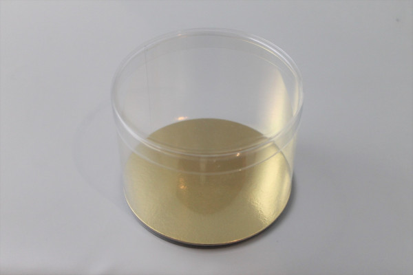 Klarsichtschachteln Rund 8x8cm geklebter goldene Boden und loser Deckel (25 Stück) [KJ-8X8KG]