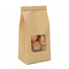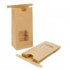 A visit to the bakery or candy story is even more special when you get to take home your treats. Our TTW1K Kraft Tin Tie Window Bags have an inner poly vapor lining that seals out air and moisture, so your items stay fresh. This bag measures 86 x 64 x 197 mm and it has a 51 x 51 mm clear window that gives customers a peek of what's inside. The attached tie tin top is resealable so customers have easy product access. This bag has a flat bottom and stands upright for easy filling. For a secure closure, roll down the tin tie top, fold the edge over, and fasten the tabs in place. Food safe.