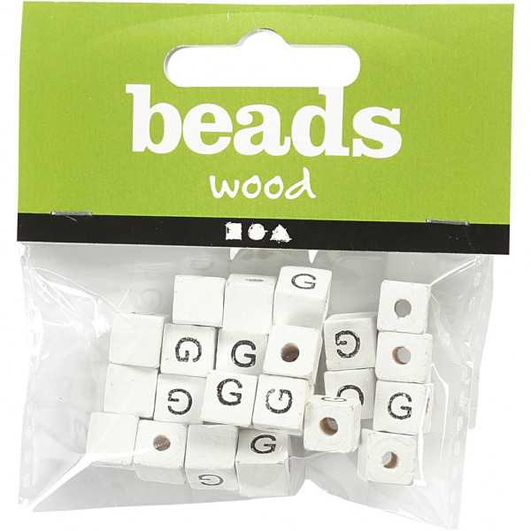 Buchstaben-Perle, Größe 8x8 mm, Lochgröße 3 mm, Weiß, Grass tree, G, 25Stck. [HOB-68957]