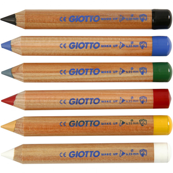 Schminkstifte, Sortiment, L 9 cm, Standard-Farben, Grundfarben, 6Stck. [HOB-77200]