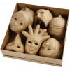 Handgearbeitete Masken aus Pappmaché. Pck. mit 6 Designs á 10 St.