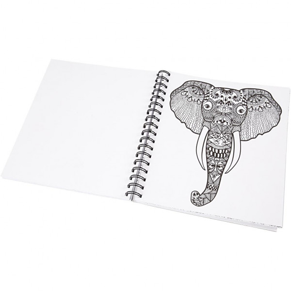 Malbuch mit Spiralbindung und festen, am Rand perforierten Seiten.