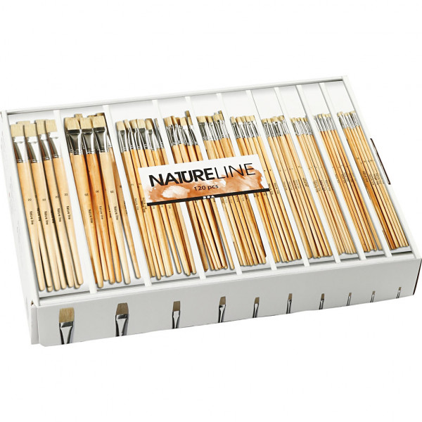 Nature Line Pinsel im Sortimentkasten, Nr. 00-22 , langer Griff, 120sort. [HOB-10548]