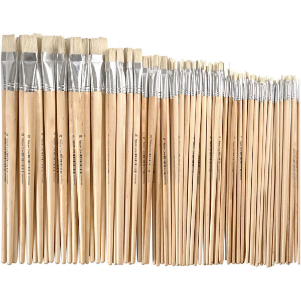 Sortiment Flachpinsel aus Schweineborsten mit Holzgriff - ideal für dickflüssige Farben.