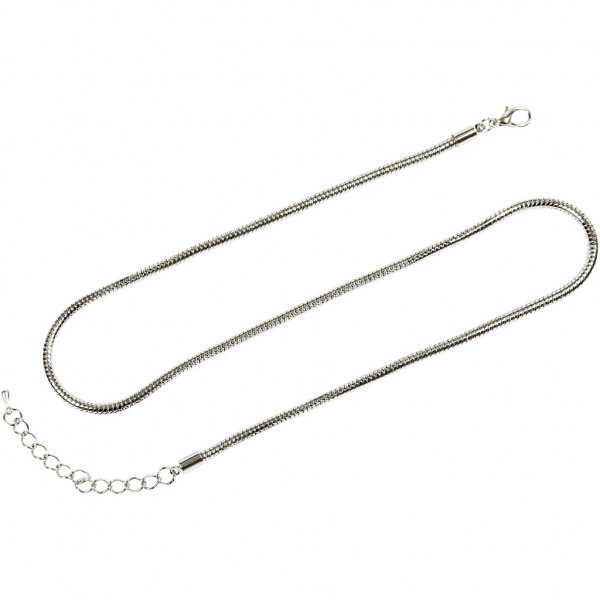 Halskette, L 45 cm, D: 3 mm, Versilbert, 1Stck [HOB-63273]