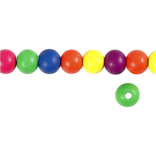 Holzperlen-Mix in Neonfarben, D: 10 mm, Lochgröße 2,5 mm, Neonmix, 18g, ca. 60 sort. [HOB-566951]