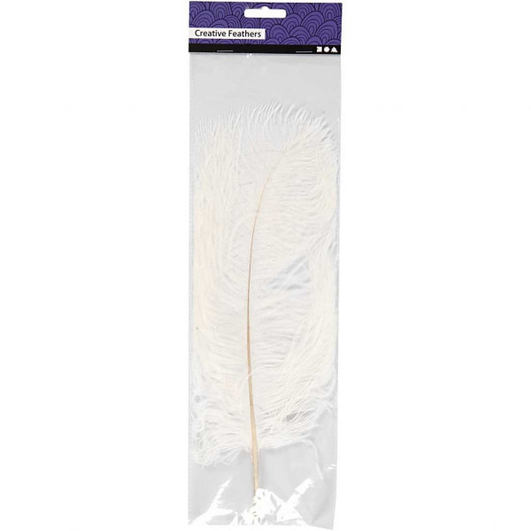 Straußenfedern, L 35-40 cm, Weiß, 1Stck [HOB-51811]