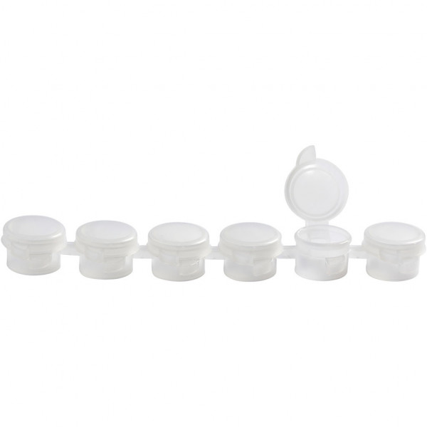 Jeder Strang hat 6 leere, leicht mit Schnappverschluss zu öffnende/schließende Becher á 5 ml.