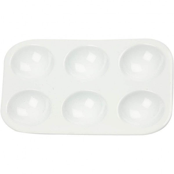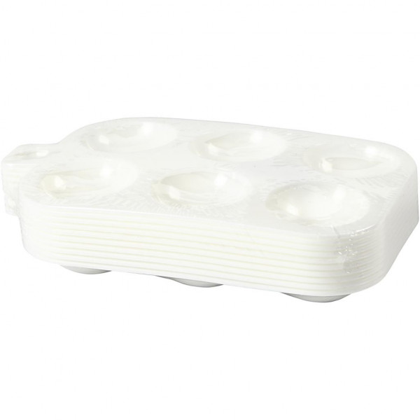 Rechteckige Palette aus Kunststoff mit 6 Vertiefungen.
