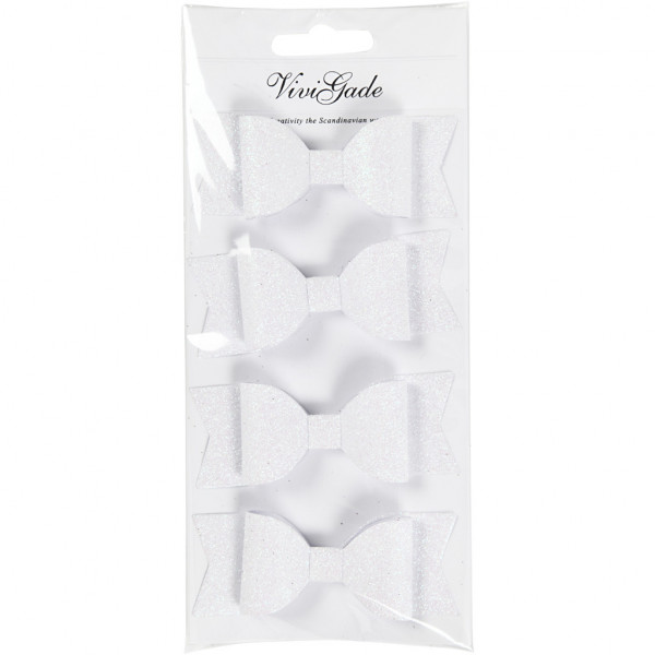 Papier-Schleifen, Größe 31x85 mm, Weiß mit Glitter, 4Stck. [HOB-24784]