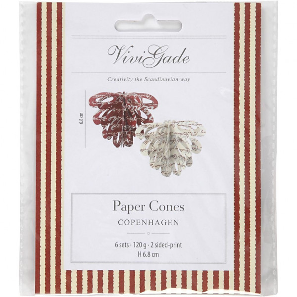 Ausgestanzte Vorlagen zum Auffalten von 6 sort. Papierzapfen in zwei Versionen - Design Vivi Gade.
