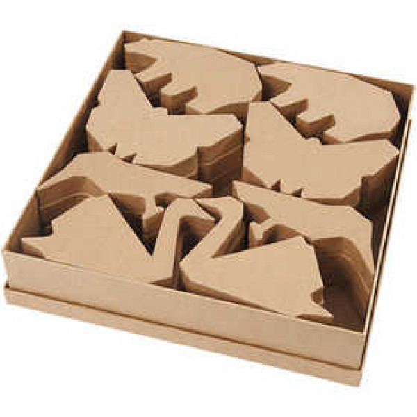 Pappmaché-Tiere, H 10,5-12,5 cm, Stärke: 25 mm, 24Stck. [HOB-99357]