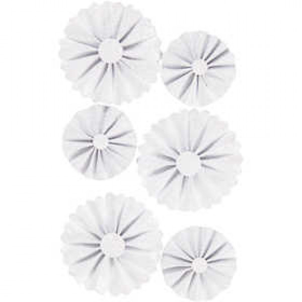 Papier-Rosetten, D: 35+50 mm, Weiß mit Glitter, 6Stck. [HOB-24782]